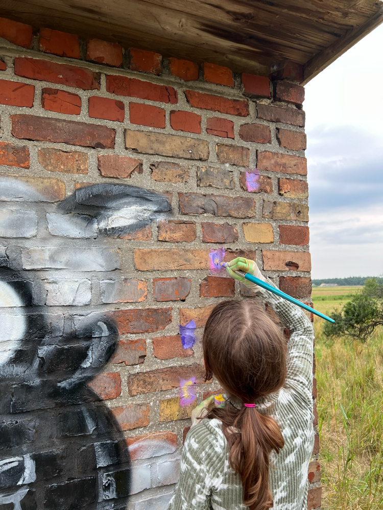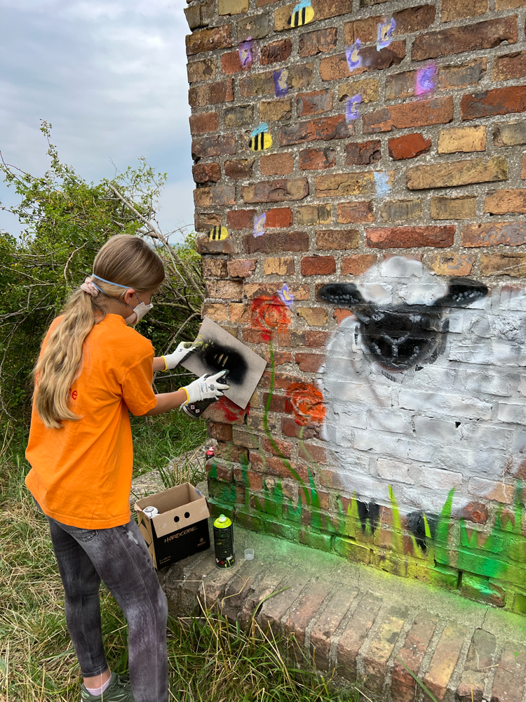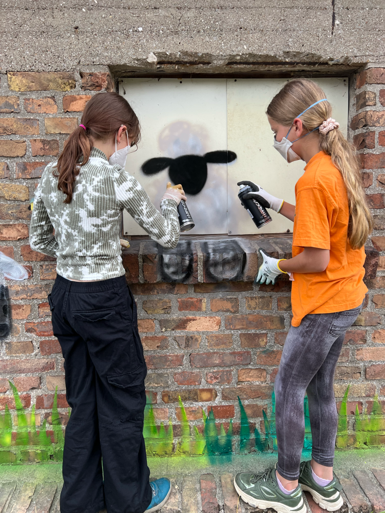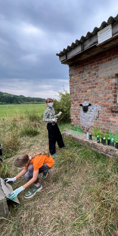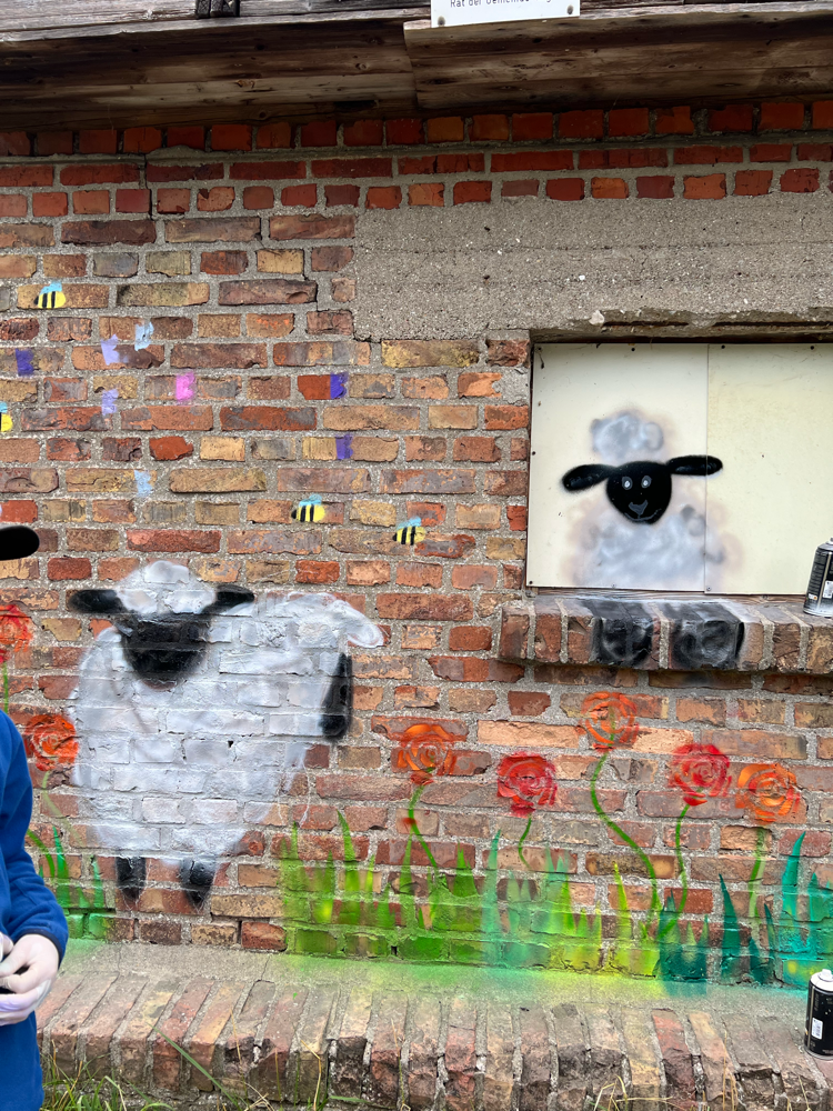 Ein herzliches Dankeschön 🫶🏻 auch an den Eigentümer des Backsteinhäuschens, der der Lernangebotsgruppe die Wand zur Verfügung stellte und Vertrauen in ihre kreativen Fähigkeiten setzte.
