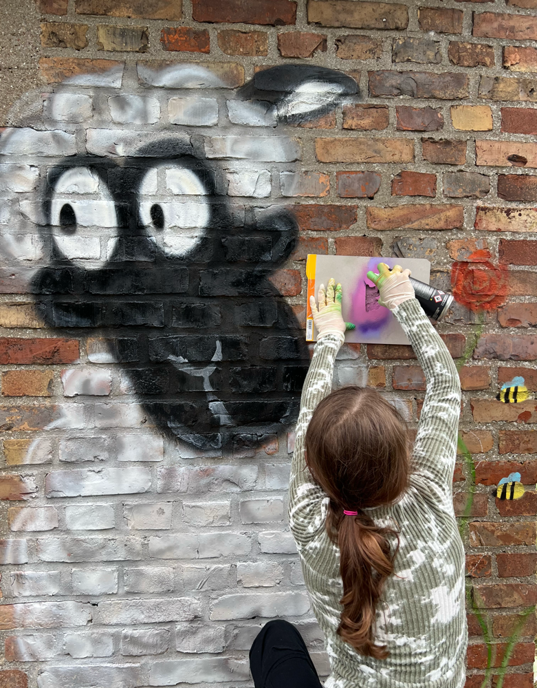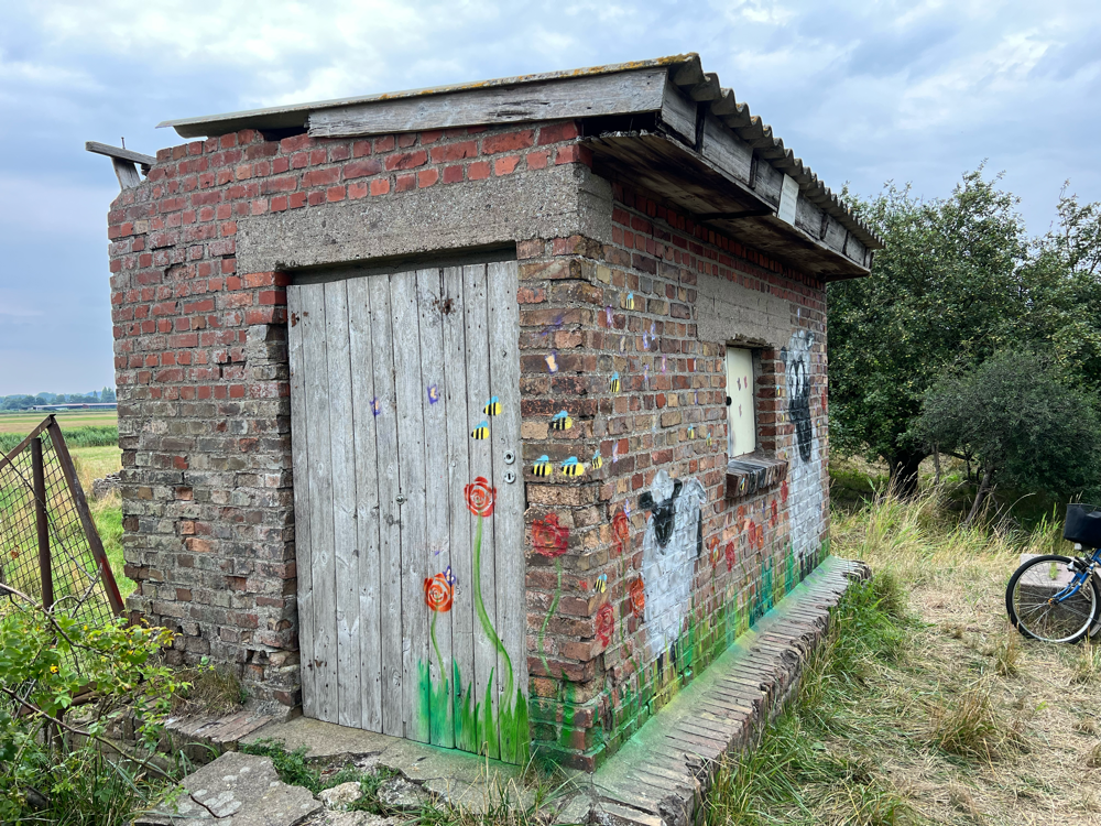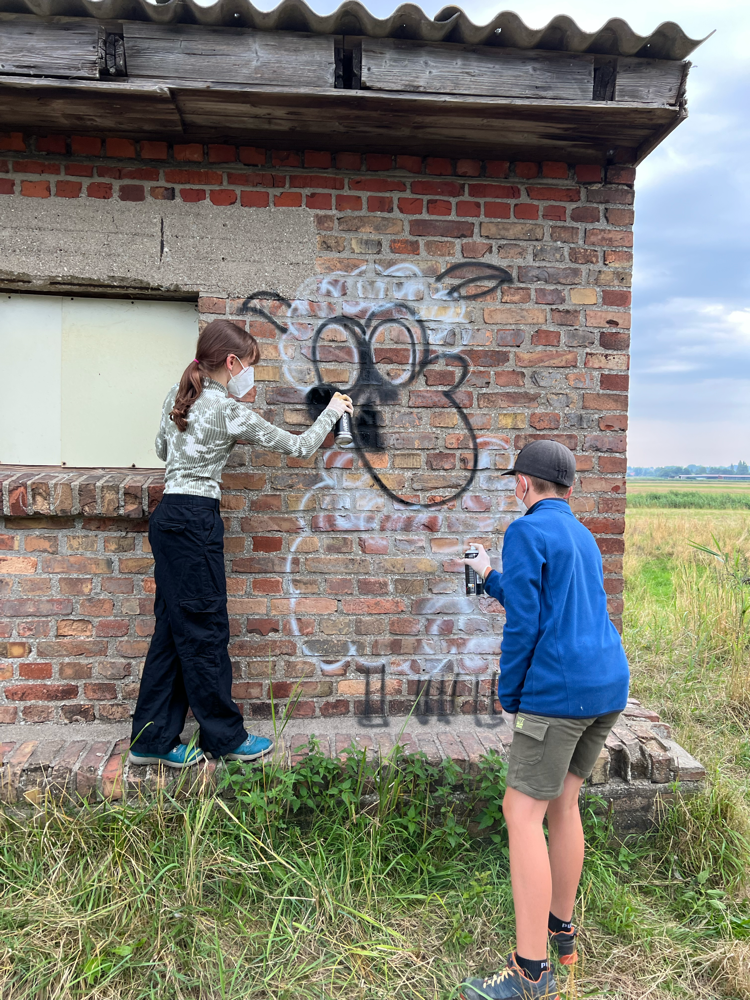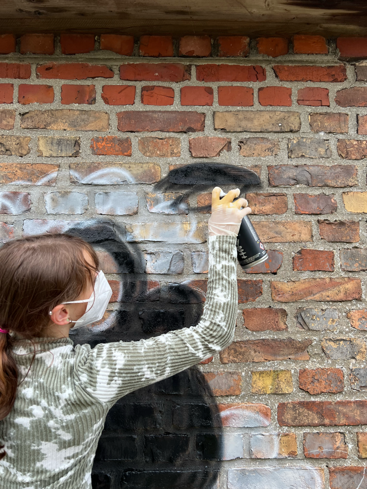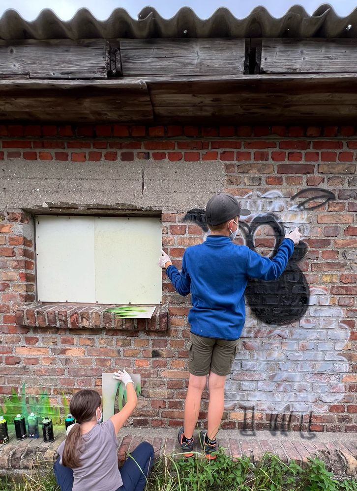 Ein herzliches Dankeschön 🫶🏻 auch an den Eigentümer des Backsteinhäuschens, der der Lernangebotsgruppe die Wand zur Verfügung stellte und Vertrauen in ihre kreativen Fähigkeiten setzte.